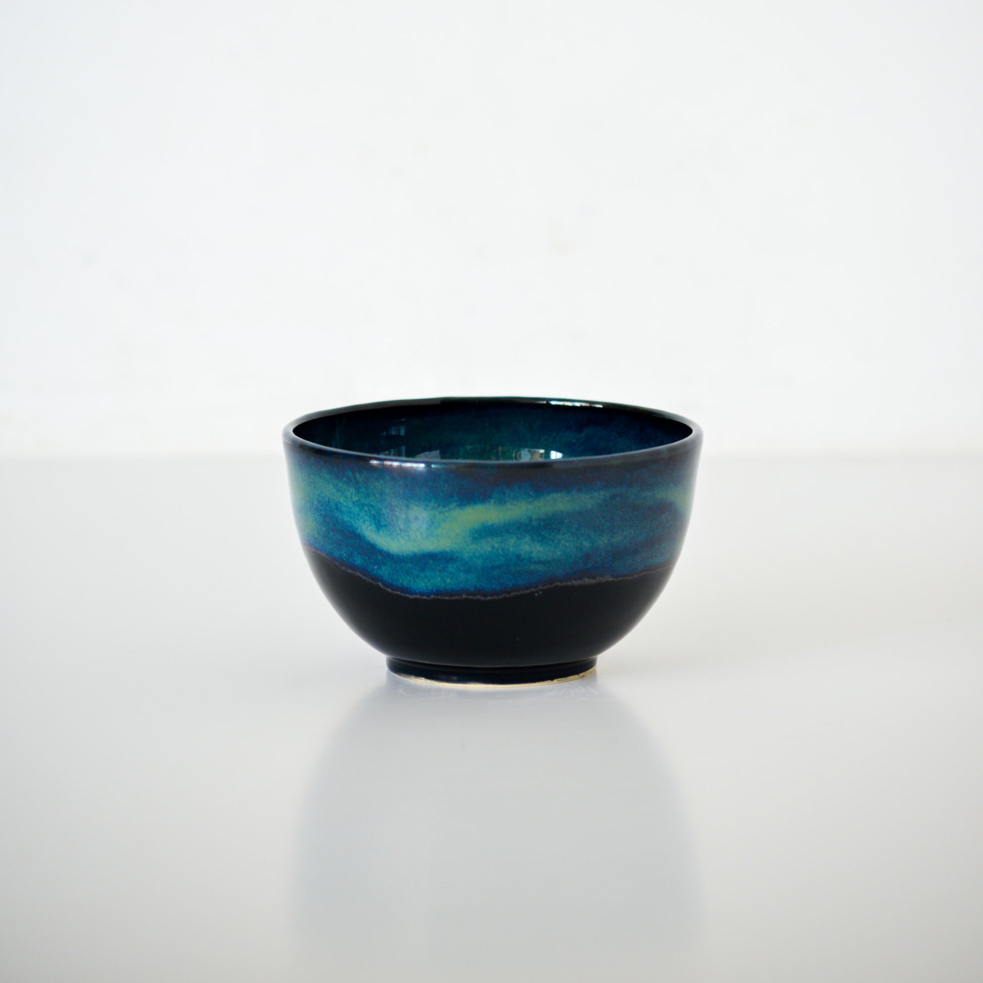 Inspired by the breathe-taking natural scenario, the dancing northern lights, this collection is handmade and hand-painted with glossy black and green glazes.