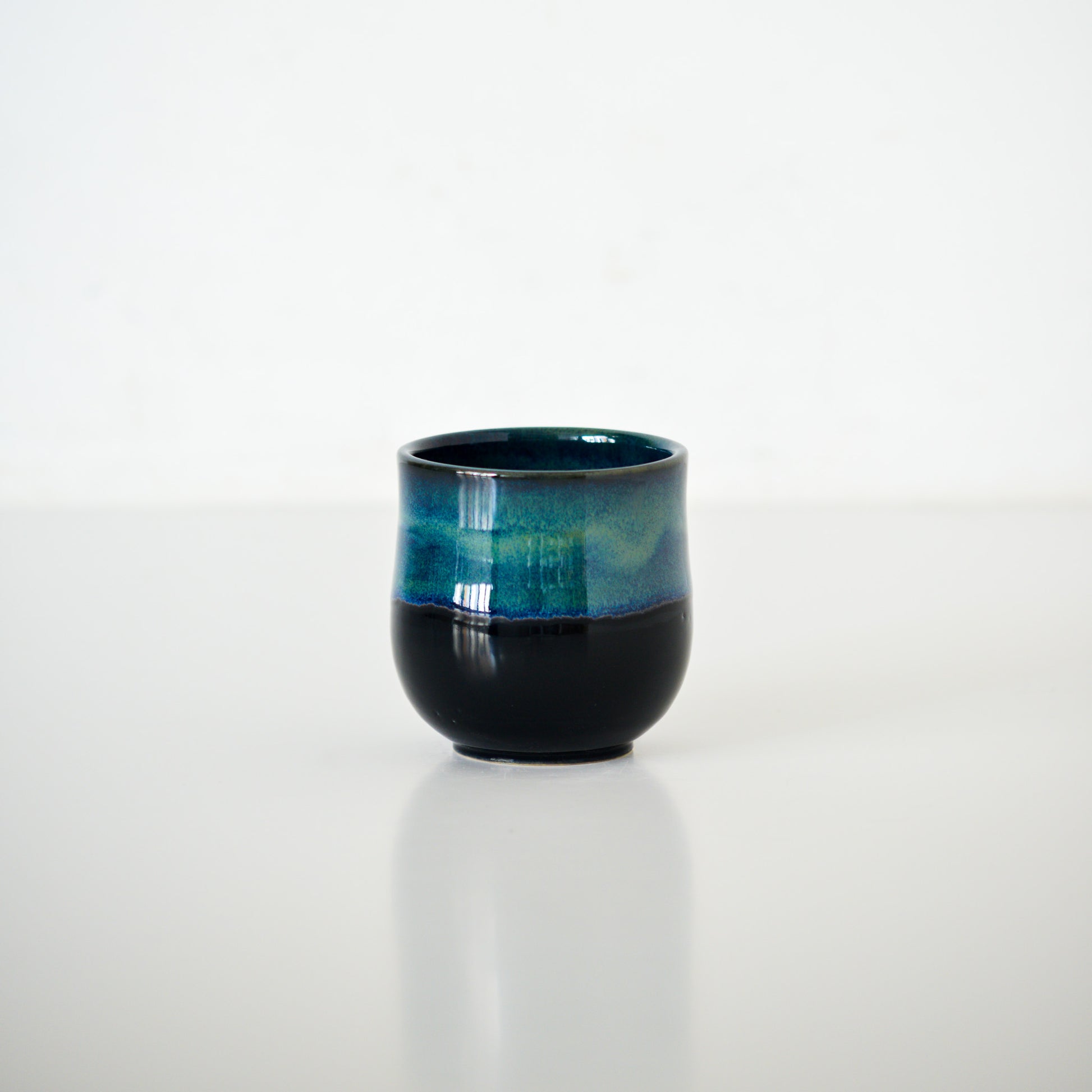 Inspired by the breathe-taking natural scenario, the dancing northern lights, this collection is handmade and hand-painted with glossy black and green glazes.