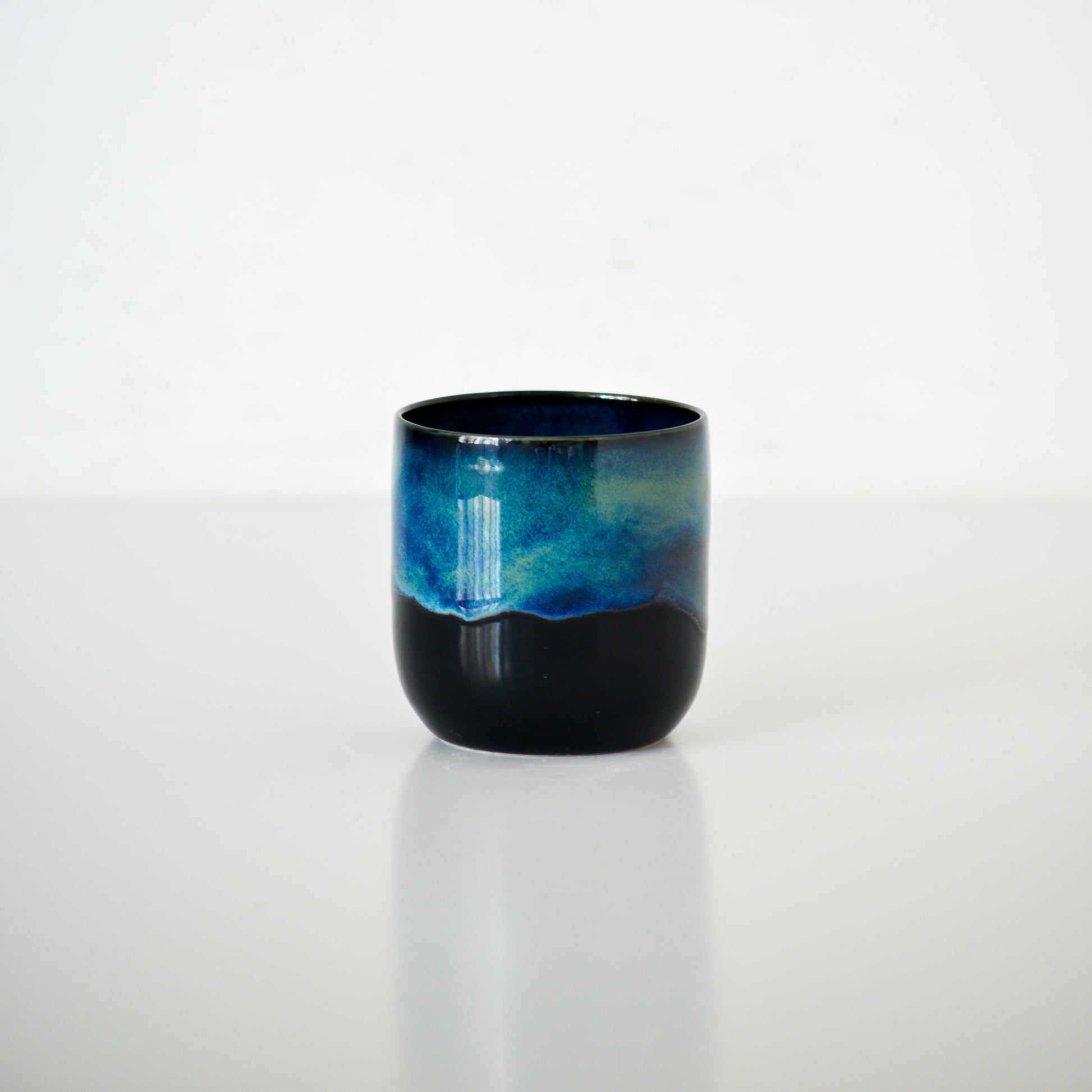 Inspired by the breathe-taking natural scenario, the dancing northern lights, this collection is handmade and hand-painted with glossy black and green glazes.