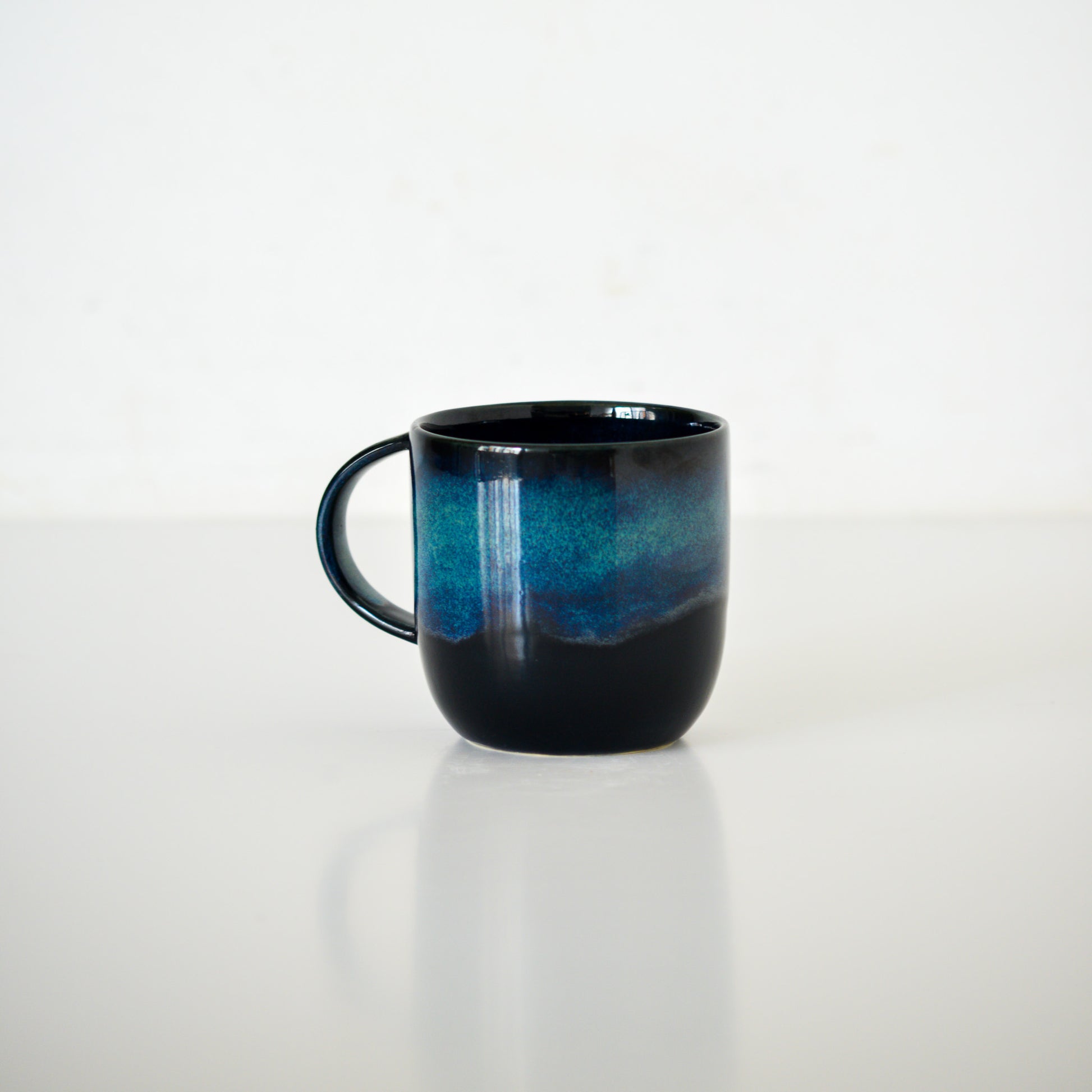 Inspired by the breathe-taking natural scenario, the dancing northern lights, this collection is handmade and hand-painted with glossy black and green glazes.